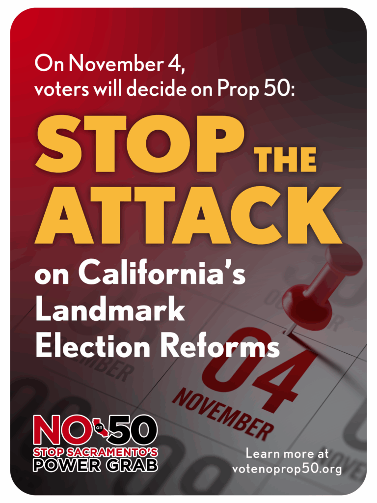 redistricting by saying NO to Prop 50 and protecting California democracy!