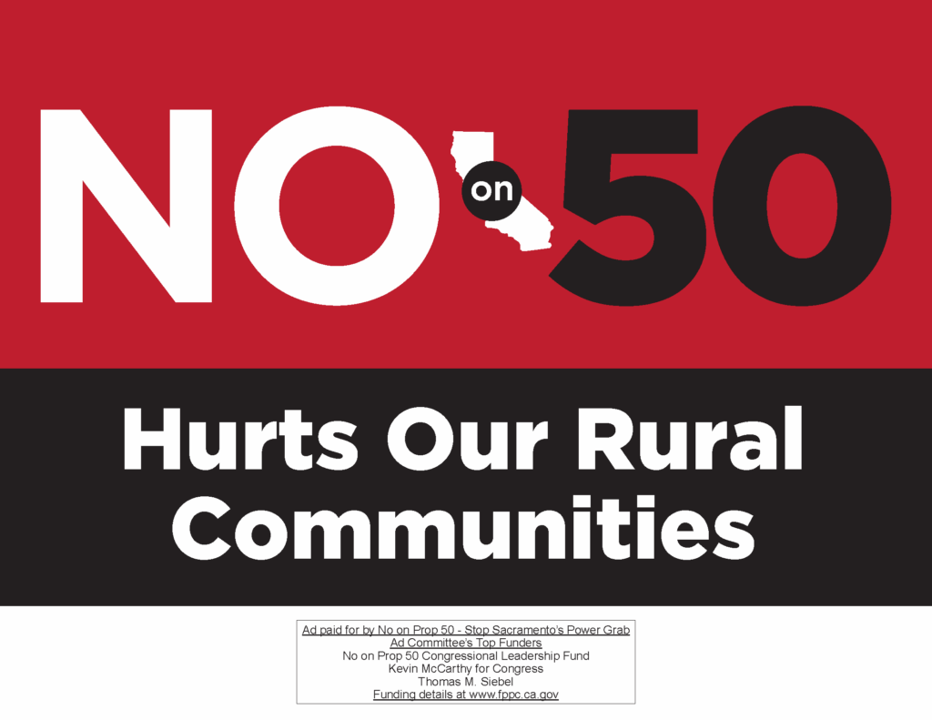 Post Vote No on Prop 50 window signs and flyers at home, in your car, or in your community to
